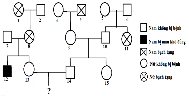 Sơ đồ phả hệ dưới đây mô tả sự di truyền bệnh bạch tạng và bệnh máu khó đông ở
