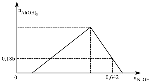 Cho a mol Al tan hoàn toàn vào dung dịch chứa b mol HCl thu được dung dịch Y chứa 2 chất tan có cùng nồng độ mol. Thêm từ từ dung dịch NaOH vào dung dịch Y ta có đồ thị sau: