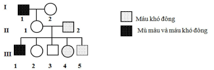 Cho phả hệ sau: Biết rằng bệnh mù màu và bệnh máu khó đông đều do gen lặn nằm trên vùng