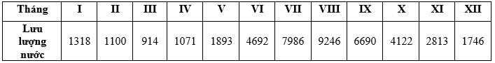 Cho bảng số liệu: LƯU LƯỢNG NƯỚC TRUNG BÌNH CÁC THÁNG CỦA LƯU VỰC SÔNG HỒNG (Trạm Sơn Tây)