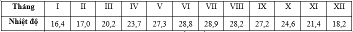 Cho bảng số liệu NHIỆT ĐỘ TRUNG BÌNH CÁC THÁNG CỦA HÀ NỘI (Đơn vị 0C) Theo bảng số liệu,