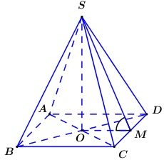 Cho hình chóp tứ giác đều có cạnh đáy bằng \(a\) và có chiều cao bằng \(\dfrac{{\sqrt 3 a}}{2}\).