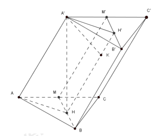 Gọi \(H'\) là trung điểm của \(M'B'\). Dựng \(A'K \bot HH'\) (1)\( \Rightarrow A'K \bot \left( {B'M'MB} \right).\)\( \Rightarrow A'K = \dfrac{{3a}}{4}\)