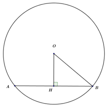 Cho đường tròn tâm \(O\), bán kính \(R = 10cm\). Gọi \(AB\) là một dây cung của đường trong đã cho, \(AB = 12cm\). Tính khoảng cách từ tâm \(O\) đến dây cung \(AB\).