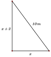 Một sân khấu hình chữ nhật có đường chéo dài \(10m\). Biết chiều dài hơn chiều rộng \(2m\) (xem hình vẽ). Tính diện tích sân khấu.