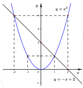 Cho hai hàm số \(y = {x^2}\) và\(y = - x + 2\).