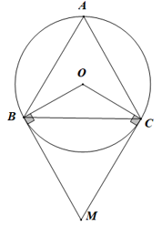 Cho tam giác đều ABC nội tiếp đường tròn \(\left( O \right).\) Các tiếp tuyến tại B và C của đường tròn \(\left( O \right)\) cắt nhau tại M. Số đo\(\angle BMC\) bằng