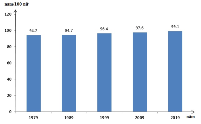 Cho biểu đồ: Tỉ số giới tính của dân số Việt Nam qua các năm