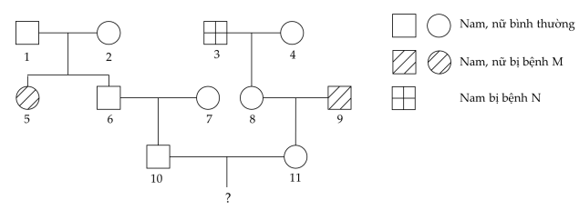 Cho phả hệ sau: Biết mỗi bệnh đều do 1 trong 2 alen của 1 gen quy định, gen quy định bệnh N