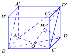 - Chứng minh \(AC \bot \left( {ODD'} \right)\) với \(O = AC \cap BD\), trong \(\left( {ODD'} \right)\) kẻ \(OH \bot OD'\), chứng minh \(d\left( {D;\left( {ACD'} \right)} \right) = OH\).