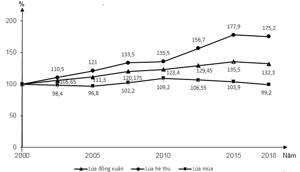 Cho biểu đồ: TỐC ĐỘ TĂNG TRƯỞNG SẢN LƯỢNG LÚA CÁC MÙA VỤ CỦA NƯỚC TA, GIAI ĐOẠN 2010