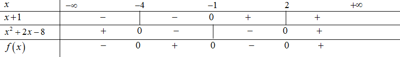 Tập nghiệm của bất phương trình \({x^3} + 3{x^2} - 6x - 8 \le 0\) là