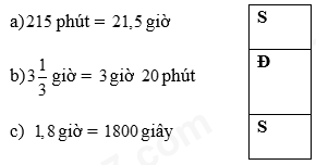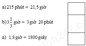 Sử dụng bảng đơn vị đo thời gian: \(1\) giờ = \(60\) phút; \(1\) phút = \(60\) giây