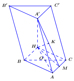 - Chứng minh \( \Rightarrow d\left( {B;\left( {ACC'A'} \right)} \right) = d\left( {H;\left( {ACC'A'} \right)} \right)\). Gọi \(M\) là trung điểm của \(AC\), trong \(\left( {A'HM} \right)\) kẻ \(HK \bot A'M\,\,\left( {K \in A'M} \right)\), chứng minh \(d\left( {H;\left( {ACC'A'} \right)} \right) = HK\).