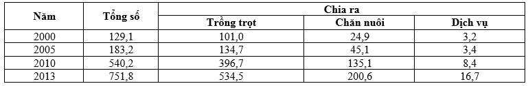 Nhận định nào sau đây không chính xác khi nhận xét về giá trị sản xuất nông nghiệp