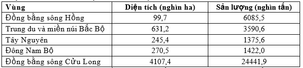 Cho bảng số liệu:DIỆN TÍCH VÀ SẢN LƯỢNG LÚA Ở MỘT SỐ VÙNG CỦA NƯỚC TA NĂM 2018(Nguồn: