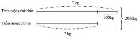 Hai thửa ruộng thu hoạch được tất cả \(2\) tấn \(56kg\) thóc. Thửa ruộng thứ nhất thu hoạch được nhiều hơn thửa ruộng thứ hai là \(3\) tạ. Vậy thửa ruộng thứ nhất thu hoạch được ……ki-lô-gam thóc ; thửa ruộng thứ hai thu hoạch được ………..ki-lô-gam thóc.