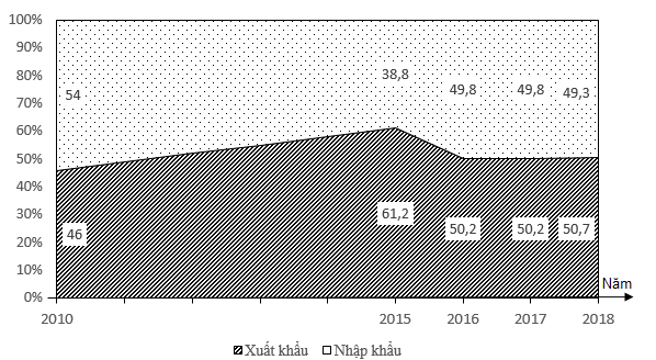 Cho biểu đồ về xuất nhập khẩu hàng hóa của nước ta giai đoạn 2010 – 2018