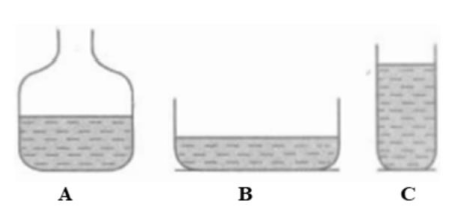 Các bình ở hình bên đều chứa cùng một lượng nước và được đặt trong cùng một phòng. Câu nào sau đây là đúng?