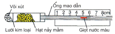 Hình bên mô tả thời điểm bắt đầu thí nghiệm phát hiện hô hấp ở thực vật. Thí nghiệm