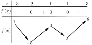 Dựa vào BBT xác định điểm có tung độ lớn nhất trên \(\left[ { - 3;3} \right]\).