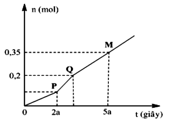 Cho m gam hỗn hợp gồm CuO và Na2O tác dụng vừa đủ với axit HCl, thu được dung dịch X. Tiến hành điện phân dung dịch X với các điện cực trơ, màng ngăn xốp, dòng điện có cường độ không đổi. Tổng số mol khí thu được ở cả hai điện cực (n) phụ thuộc vào thời gian điện phân (t) được mô tả như đồ thị bên (đồ thị gấp khúc tại các điểm P, Q). Giả sử hiệu suất điện phân là 100%, bỏ qua sự bay hơi của nước. Giá trị của m là
