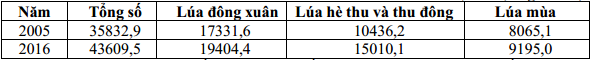 SẢN LƯỢNG LÚA CỦA NƯỚC TA, NĂM 2005 VÀ NĂM 2016
