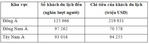 (2 điểm) Cho bảng số liệu:Số khách du lịch quốc tế đến và chi tiêu của khách du lịch ở