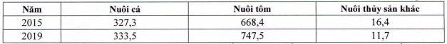 DIỆN TÍCH NUÔI TRỒNG THỦY SẢN NỘI ĐỊA CỦA NƯỚC TA NĂM 2015 VÀ 2019