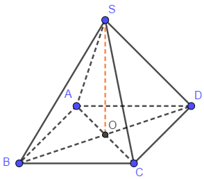 Cho hình chóp tứ giác đều \(S.ABCD\) có độ dài cạnh đáy bằng 2 và độ dài cạnh bên bằng 3