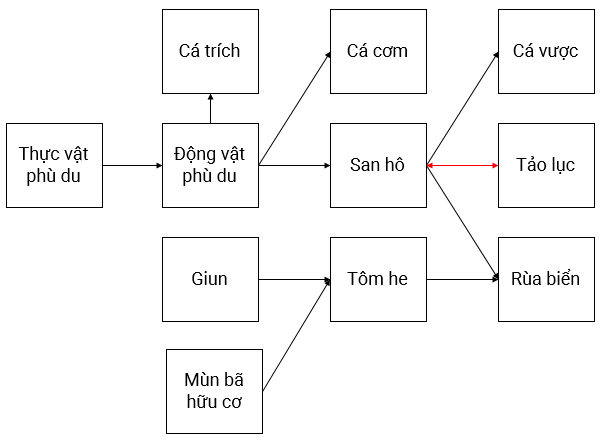 Khảo sát quần xã sinh vật ở rặng san hô người ta thấy: cá vược, rùa biển ăn san hô, san hô