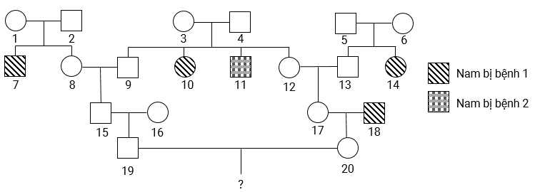 (4) Cặp vợ chồng 19 – 20 sinh con trai bị bệnh với xác suất cao hơn con gái bị bệnh.
