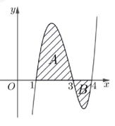 Cho hàm số \(y = f\left( x \right)\) có đồ thị như hình vẽ. Biết các miền \(A\) và \(B\) có diện