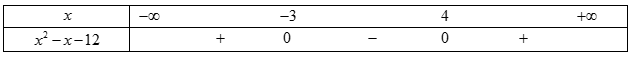 Tìm các nghiệm của biểu thức \({x^2} - x - 12\), lập bảng xét dấu và kết luận.