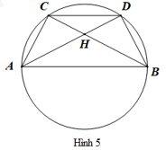 Trên đường tròn đường kính AB lấy các điểm C, D sao cho . Gọi H là giao điểm của AD và BC (Hình 5). Khẳng định nào sau đây là sai?