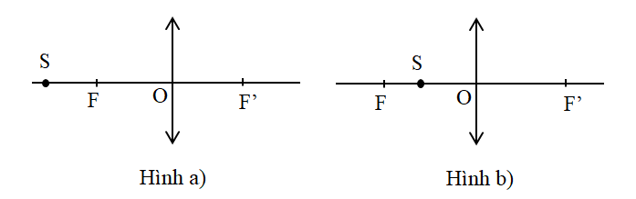 Điểm sáng S nằm trên trục chính của một thấu kính hội tụ. Vẽ ảnh S’ của điểm sáng S qua thấu kính trong các trường hợp sau: