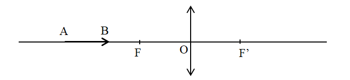 Một vật sáng AB đặt trước thấu kính hội tụ, AB nằm trên trục chính (hình vẽ). Vẽ ảnh