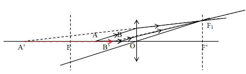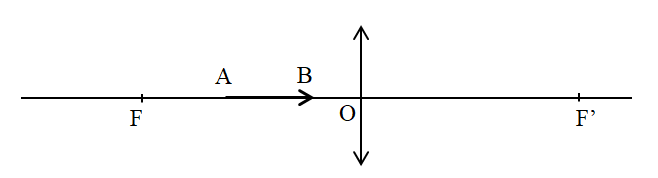 Một vật sáng AB đặt trước thấu kính hội tụ, AB nằm trên trục chính (hình vẽ). Vẽ ảnh