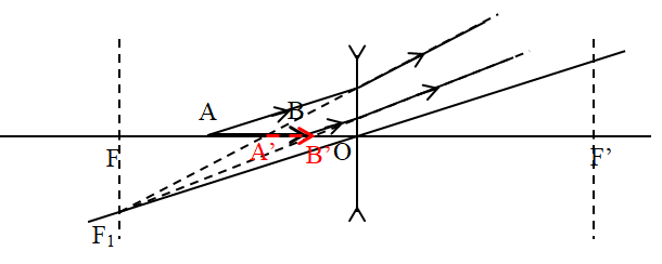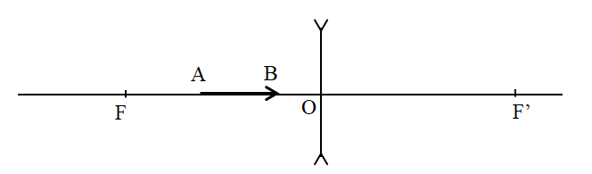 Một vật sáng AB đặt trước thấu kính phân kì, AB nằm trên trục chính (hình vẽ). Vẽ ảnh