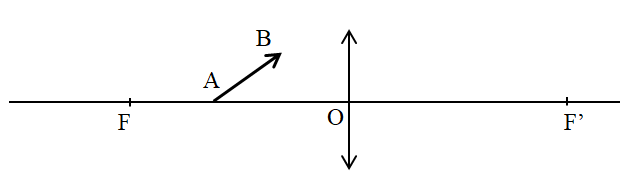Một vật sáng AB đặt trước thấu kính hội tụ, điểm A nằm trên trục chính, AB nghiêng góc so