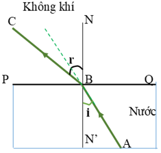 + Khi tia sáng truyền được từ nước sang không khí, góc khúc xạ lớn hơn góc tới.