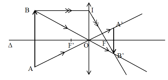 Cho AB và A’B’ là vật vầ ảnh tạo bởi thấu kính L; AB // A’B’ và có độ lớn như hình