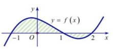 Gọi \(S\) là diện tích miền hình phẳng được gạch chéo trong hình vẽ dưới đây, với \(f\left( x \right)\) là hàm số liên tục trên \(\mathbb{R}\).