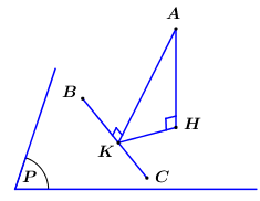 - Gọi \(H,\,\,K\) lần lượt là hình chiếu vuông góc của \(A\) lên \(\left( P \right),\,\,BC\). Chứng minh \(AH \le AK \Rightarrow d{\left( {A;\left( P \right)} \right)_{\max }} = AK\).