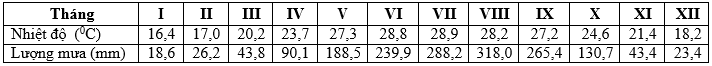 Cho bảng số liệuNHIỆT ĐỘ VÀ LƯỢNG MƯA TRUNG BÌNH CÁC THÁNG CỦA HÀ NỘI (Nguồn: Niên giám