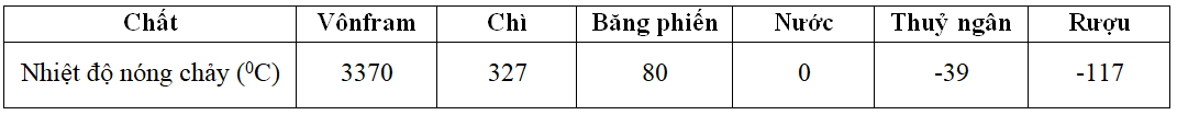 Các chất nóng chảy ở một nhiệt độ xác định. Nhiệt độ đó gọi là nhiệt độ nóng chảy. Trong suốt thời gian nóng chảy, nhiệt độ của chất không thay đổi.