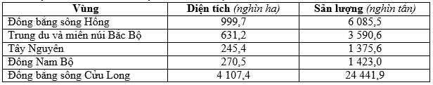 Cho bảng số liệu:DIỆN TÍCH VÀ SẢN LƯỢNG LÚA Ở MỘT SỐ VÙNG CỦA NƯỚC TA NĂM 2018 (Nguồn: