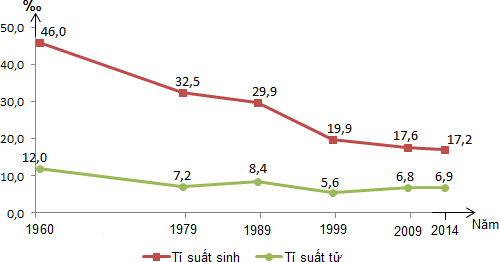 Cho biểu đồ về sinh, tử của nước ta giai đoạn 1960 - 2014: