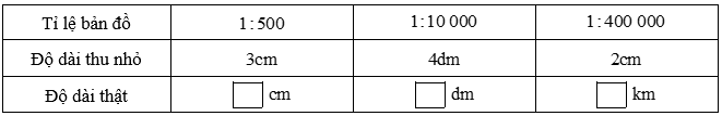 Đề tìm độ dài thật ta lấy độ dài thu nhỏ nhân với độ dài thật ứng với \(1cm\)hoặc \(1dm\) trên bản đồ.