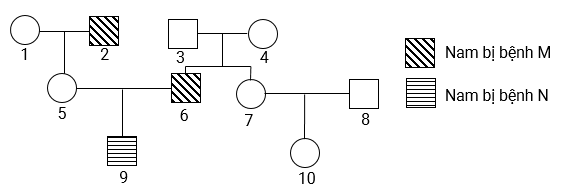 (4). Cặp vợ chồng (5) và (6) sinh con thứ hai là con trai có thể không bị bệnh N và M.